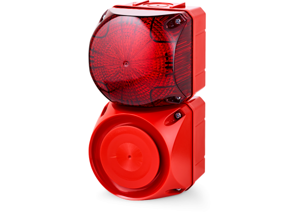 Siren och larmlampa som kopplas till centralenheten för gasövervakning, blinkar och avger ett kraftigt larmljud då larmgränsen överskrids.